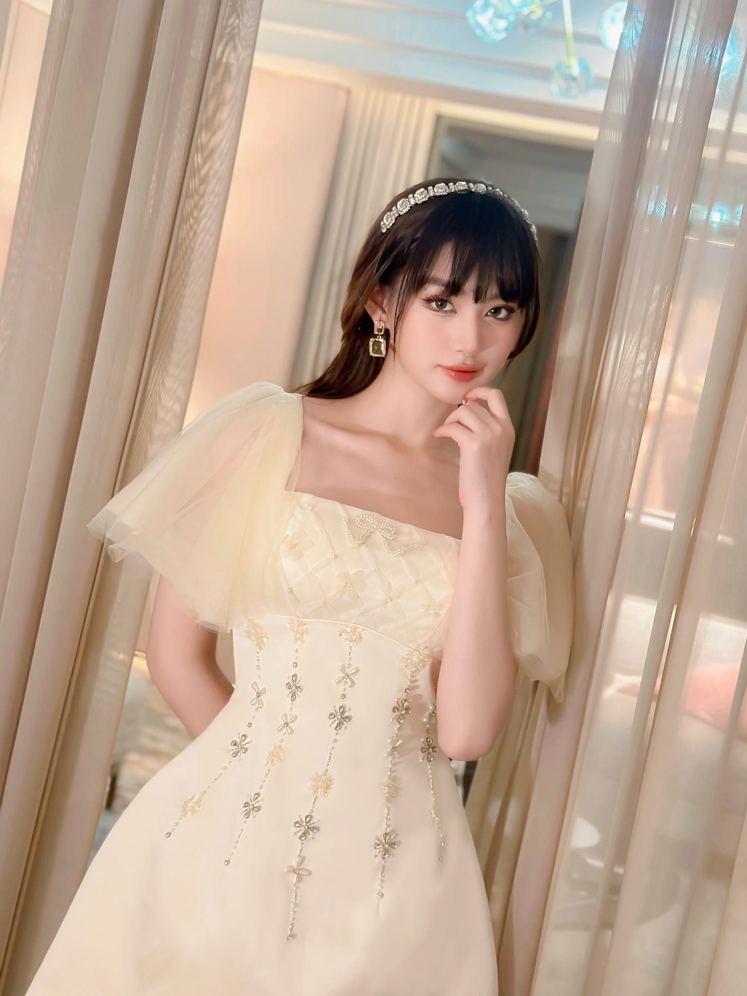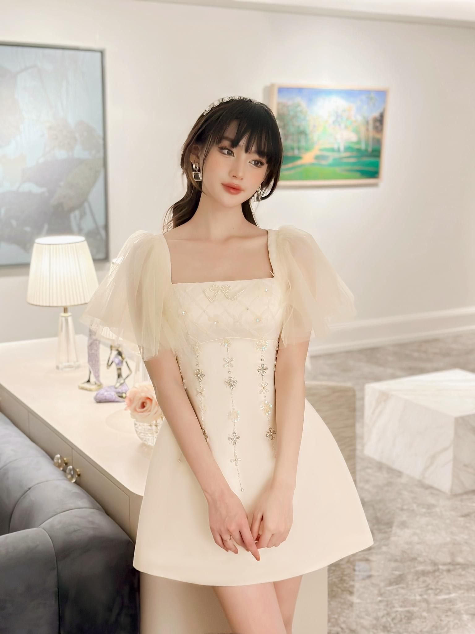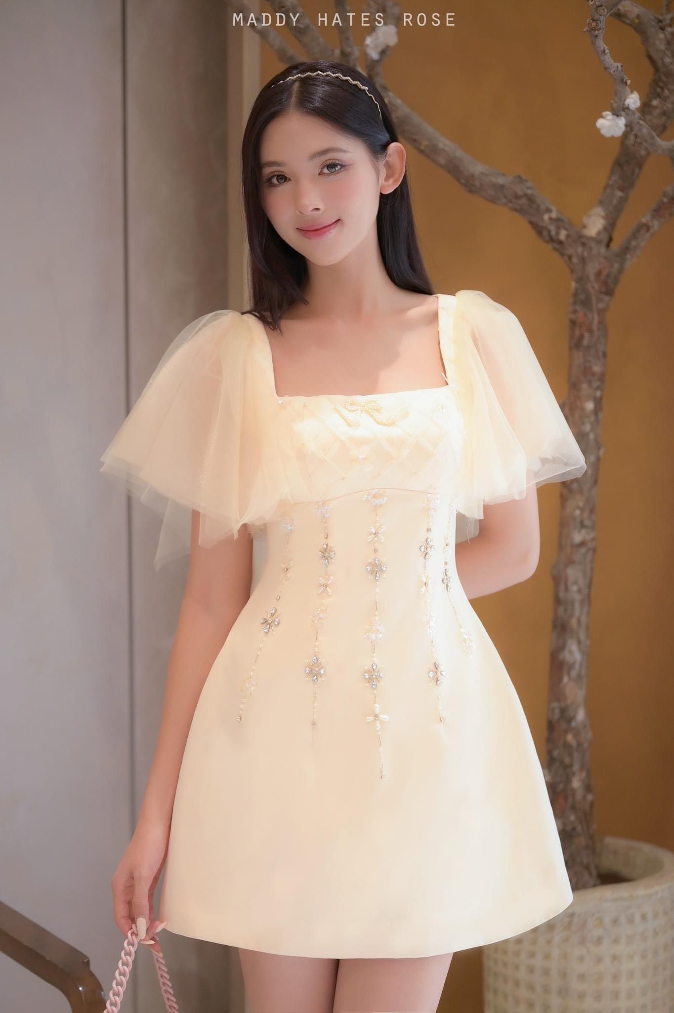 Váy be tafta ngắn đính đá