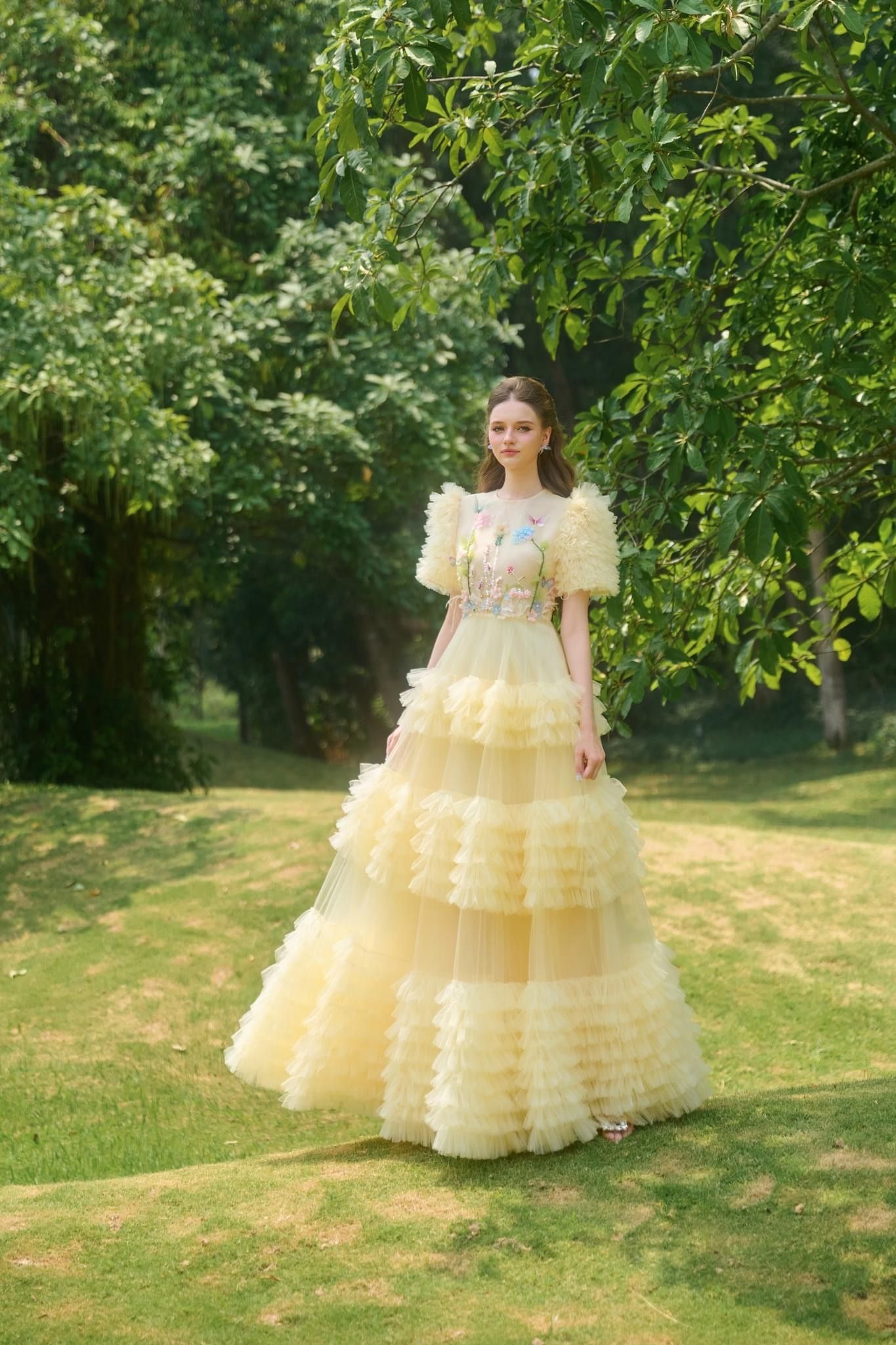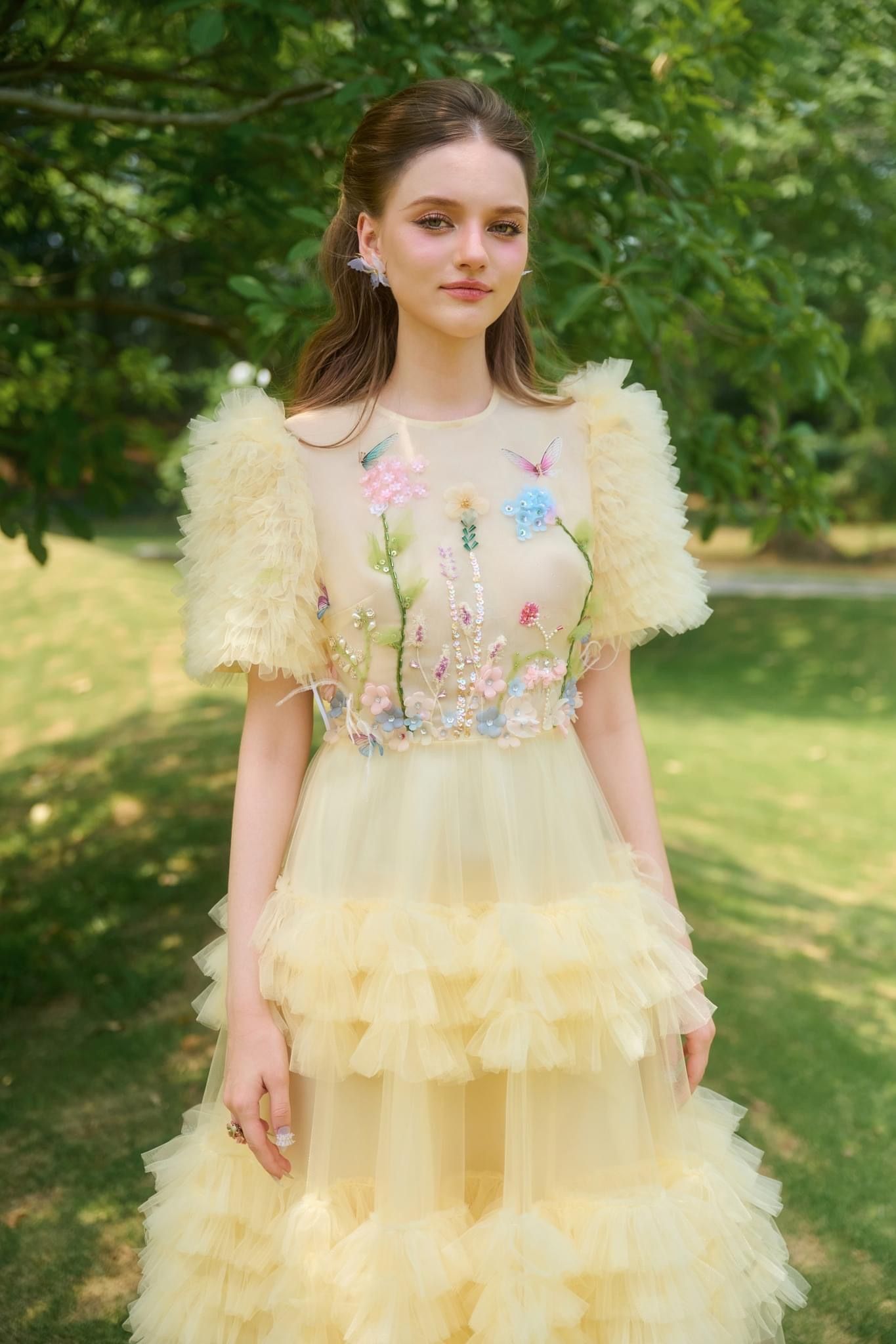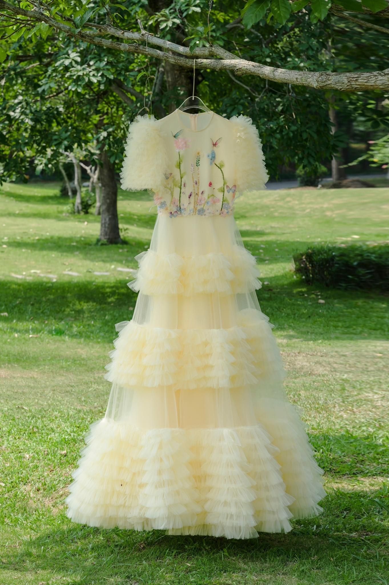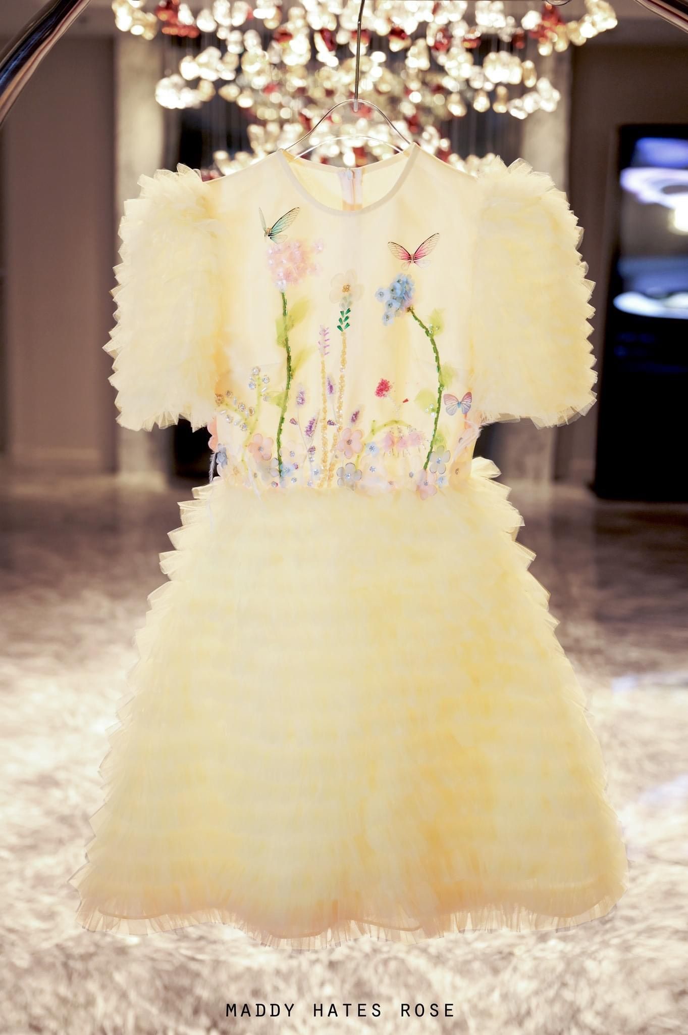 Váy be lưới dài tầng đính hoa