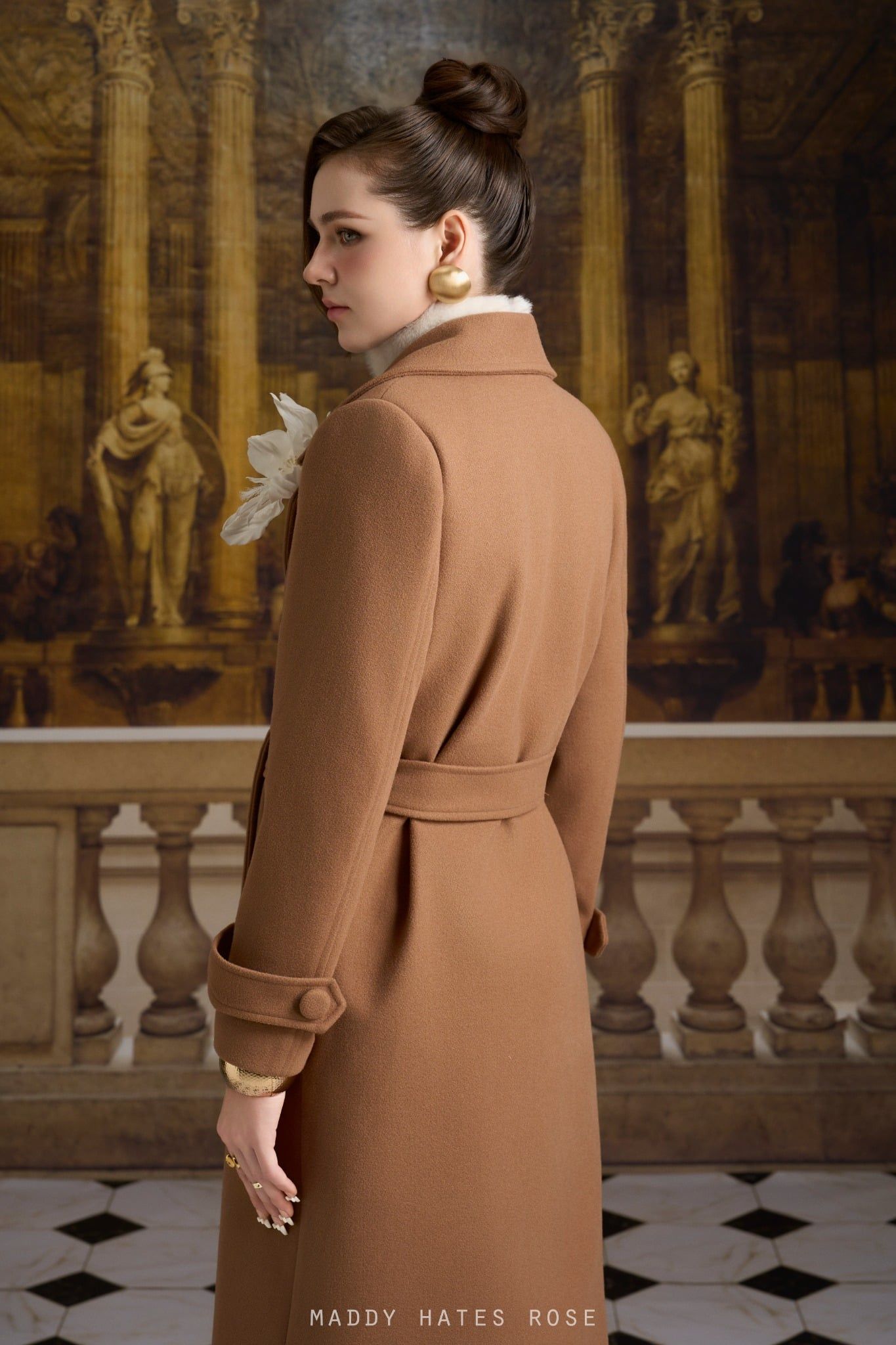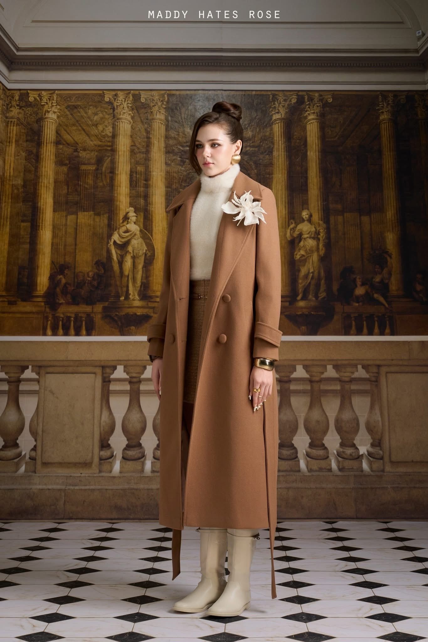 Áo khoác dạ 3650.000, áo len cổ lọ 1050.000, chân váy 1150.000