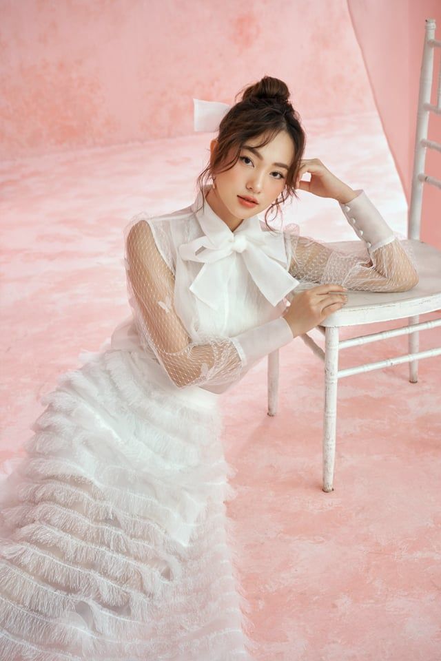 Áo sơ mi trắng lưới viền vuông, chân váy