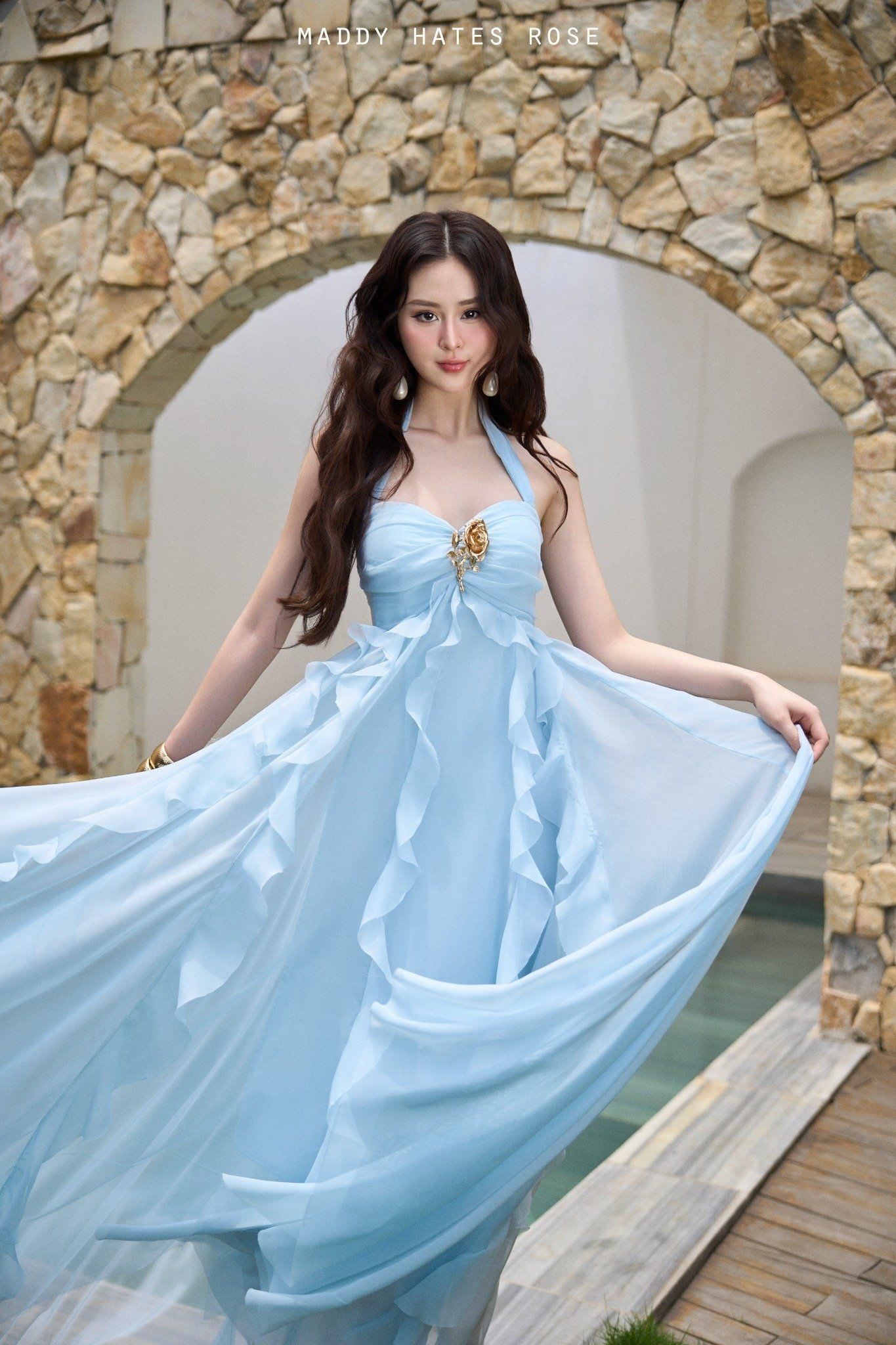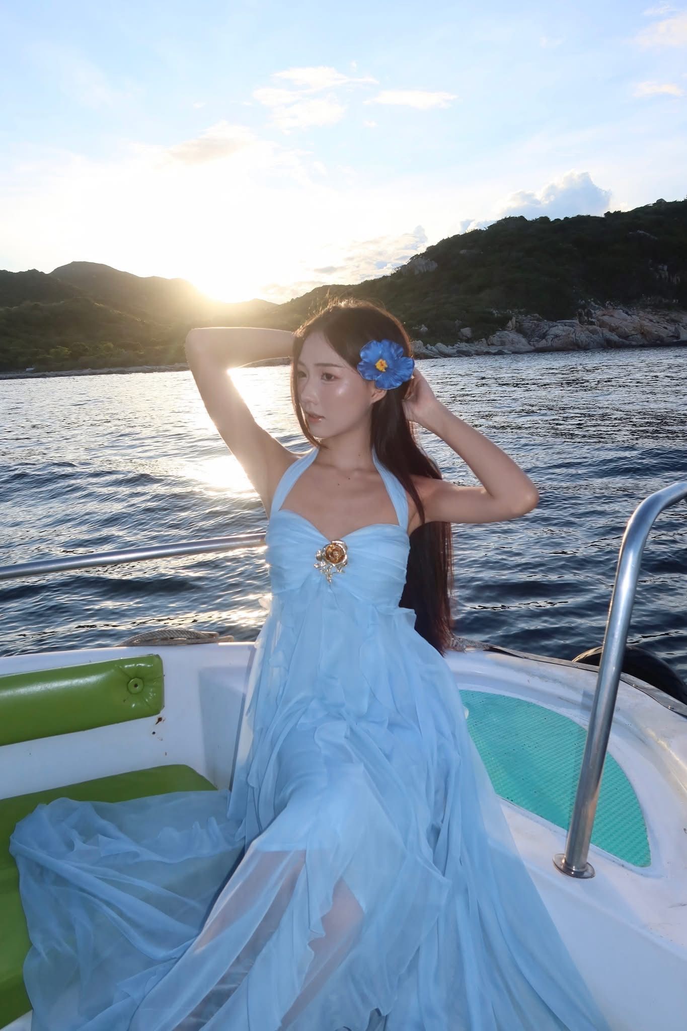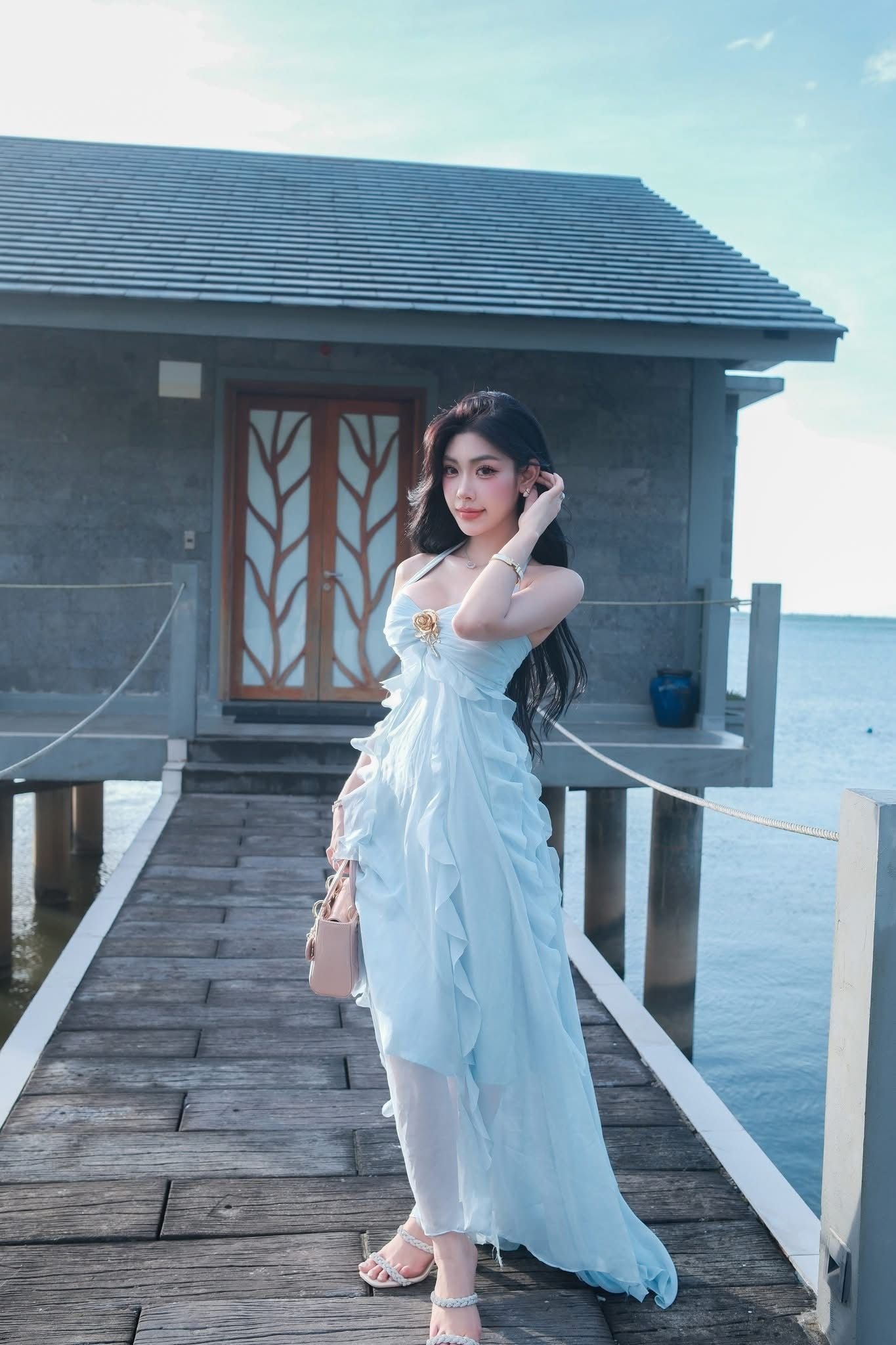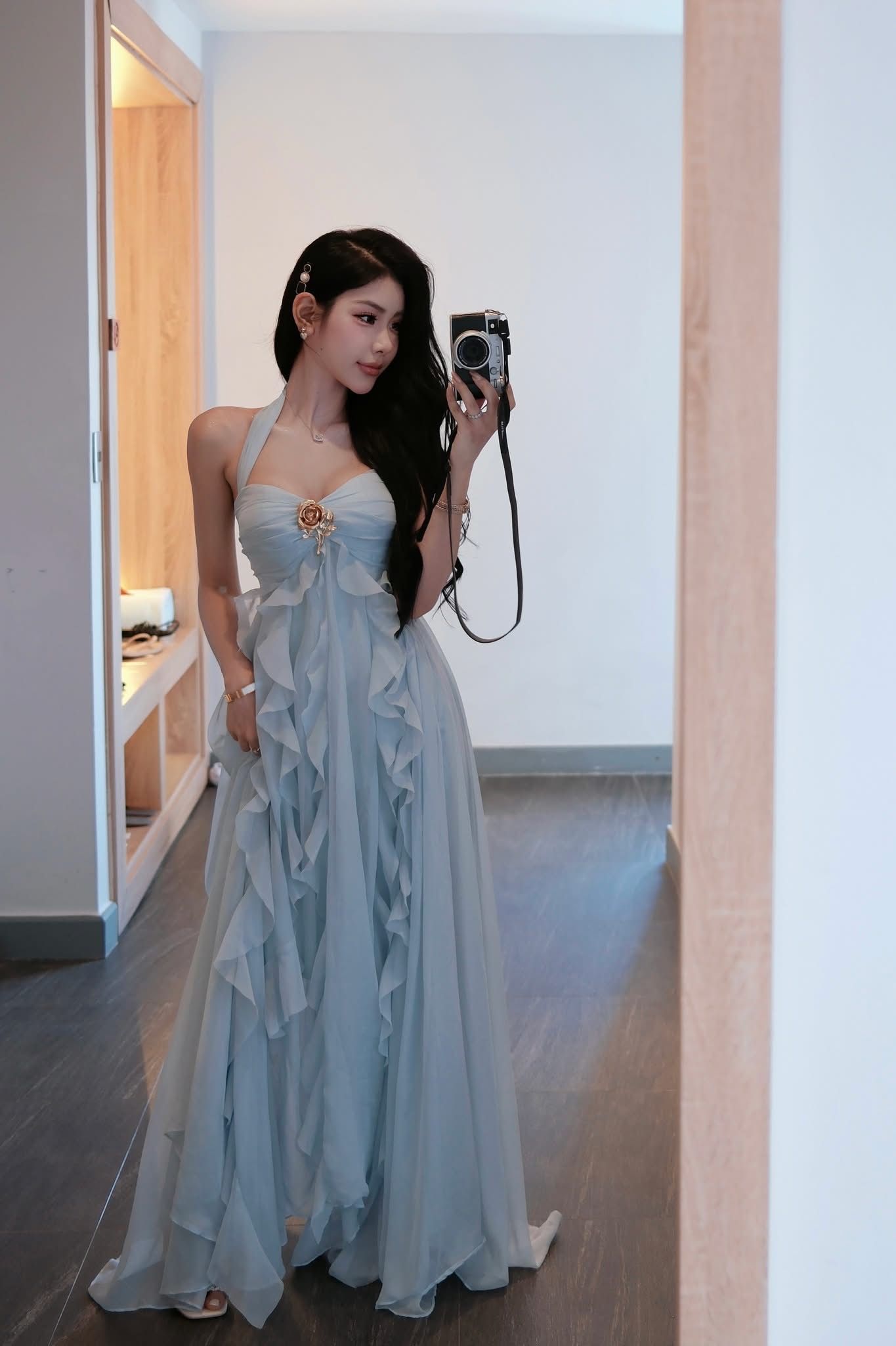 SM25-3 Đầm maxi xanh da trời