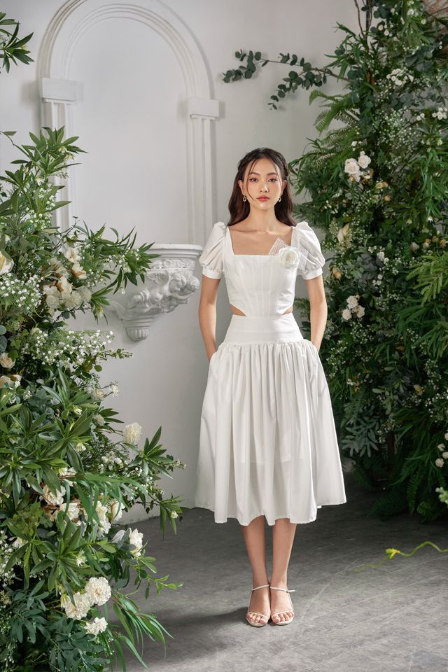 Đầm trắng thô hở eo